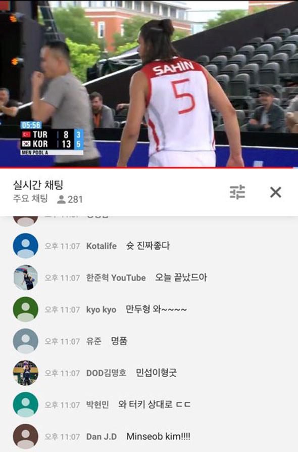 한국 대표팀의 경기는 FIBA 3x3 공식 유튜브를 통해 생중계 됐다. 한국에서 경기를 지켜보던 팬들 덕분에 채팅창도 불이 났다. 가슴 졸이며 경기를 지켜본 팬들은 채팅창에 뜨거운 응원의 메시지를 전했다.