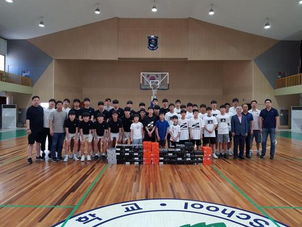 지난 23일 송도고에서 뜻깊은 행사가 열렸다. 프로에 진출한 손홍준(현대모비스), 박준영(KT), 장태빈(SK)이 후배들을 위해 선물을 들고 찾아온 것이다.
