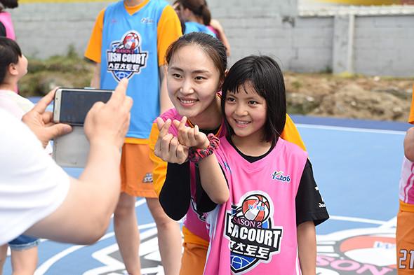 청주 KB스타즈 염윤아가 29일 강릉 참사랑지역아동센터를 찾았다. 바로 WKBL 위시코트 행사를 위함. 위시코트 캠페인은 지난 시즌부터 한 시즌 동안의 3점슛 적립금으로 WKBL이 코트를 개보수해 주는 비시즌 행사다.