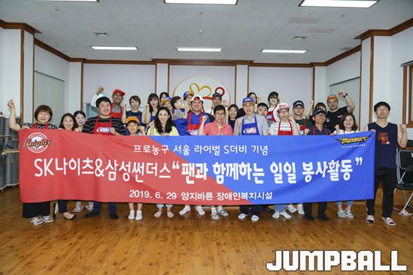 그동안 감독 및 선수들만 참가했던 S-더비 행사는 처음으로 팬들과 함께할 수 있도록 꾸며졌다. 김혜진 SK 매니저는 “2017-2018시즌이 개막하기 전에 SK 단독으로 팬들과 함께 양지바른 장애인 복지시설을 찾은 적이 있다. 이후 18년 만에 챔피언결정전 우승을 했던 좋은 기억이 있다. 이번에는 이상민 감독님, 삼성 팬들과 함께 온 만큼 챔피언결정전에서 함께 만나기로 했다(웃음)”며 남다른 의미를 부여했다.