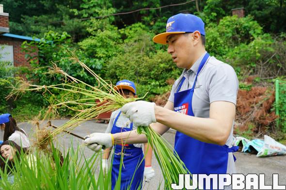작업이 한창이던 늦은 오전, 조금씩 비가 내리기 시작했다. 그러나 그 누구도 불평 없이 정해진 작업량을 마무리했다. 쉬는 시간에는 문경은, 이상민 감독과 함께 포토타임을 갖기도 했다. 간식 시간은 물론 이상민 감독의 오랜 팬이 마련한 이동식 카페까지 등장하면서 ‘SK&삼성, 팬과 함께하는 일일 봉사활동’은 깊이를 더해갔다.