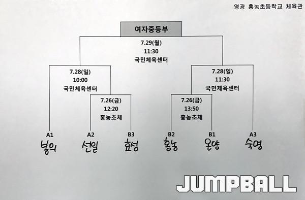 예선을 모두 마친 뒤 결선 토너먼트 추첨 결과 B조 1위 봉의중과 C조 1위 숙명여중이 준결승에 직행했고, A조 1위 선일여중과 C조 2위 효성중, A조 2위 홍농중과 B조 2위 온양여중이 26일 준결승 진출을 놓고 맞붙는다.