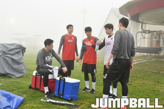 훈련 셋째 날이었던 24일 오후에는 휘닉스 파크 내에 위치한 스키 슬로프에서 체력훈련을 진행했다. 궂은 날씨 때문에 정상적인 훈련이 불가능 할 뻔 했지만 다행히 비가 그쳐 예정대로 훈련을 실시했다.
