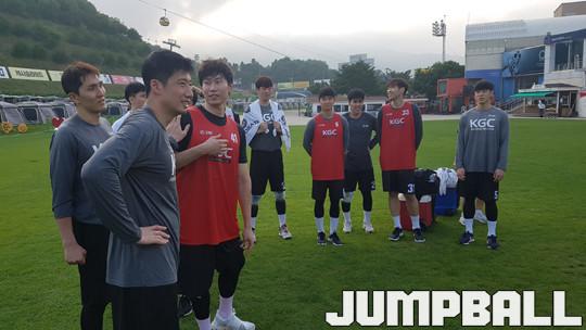KGC인삼공사 정태오 트레이너는 “팀 훈련 시작 후 지금까지 체력 훈련 위주로 했다. 전지훈련이 체력 훈련이 끝이다. 양으로도, 강도로도 가장 힘들다. 선수들도 각오가 되어 있기 때문에 힘들더라고 열심히 했으면 좋겠다”고 이야기했다.