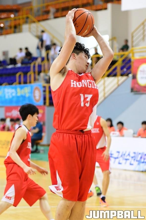 이날 박준형의 플레이가 돋보였던 건 투입 타이밍 때문. 홍대부고는 조별 예선부터 전날 전주고와의 14강 경기때까지만 해도 3학년 주축 5명으로 일찍이 승부를 기울이고, 남은 시간에 1,2학년 선수들을 기용하며 주축의 체력을 아껴왔다. 이날은 홍대부고가 다시 리드를 잡고 멀리 달아나야했던 상황에서 2학년 박준형이 3학년 형들과 함께 투입된 것이다.